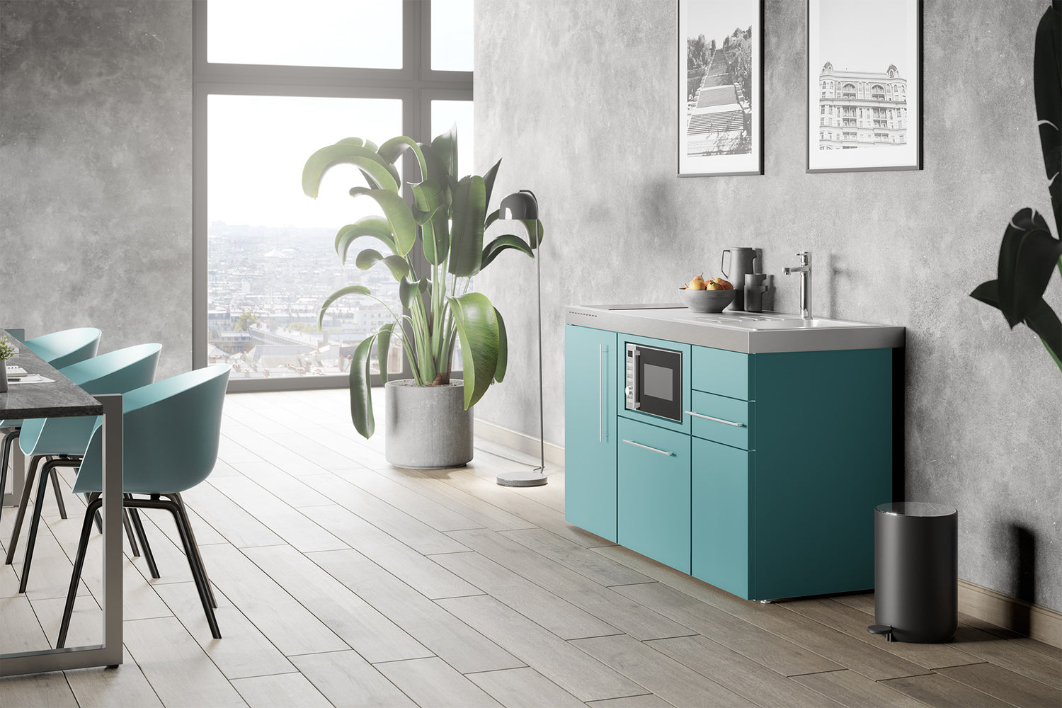 Da oggi tutte le nostre minicucine in acciaio della linea DESIGNLINE e PREMIUMLINE sono disponibili in questa bellissima nuance di turchese (RAL 210 50 15). E' un colore fresco e giovane...