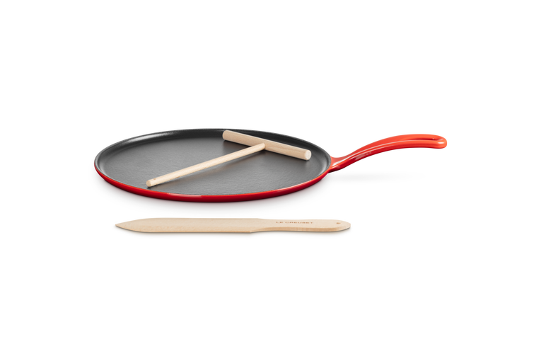 - Crepiera rotonda in ghisa vetrificata compatibile con tutte le fonti di calore come vetroceramica, induzione, gas e forno