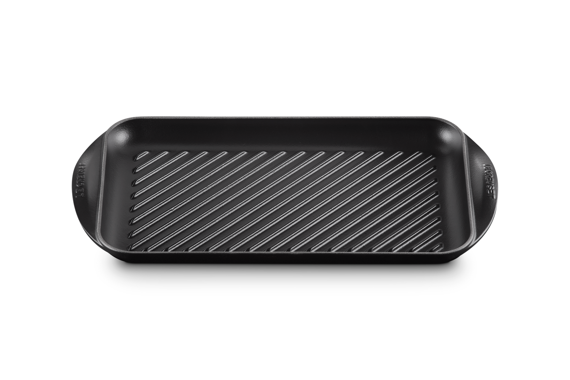 - Grill rettangolare XL in ghisa vetrificata compatibile con tutte le fonti di calore come vetroceramica, induzione, gas e forno