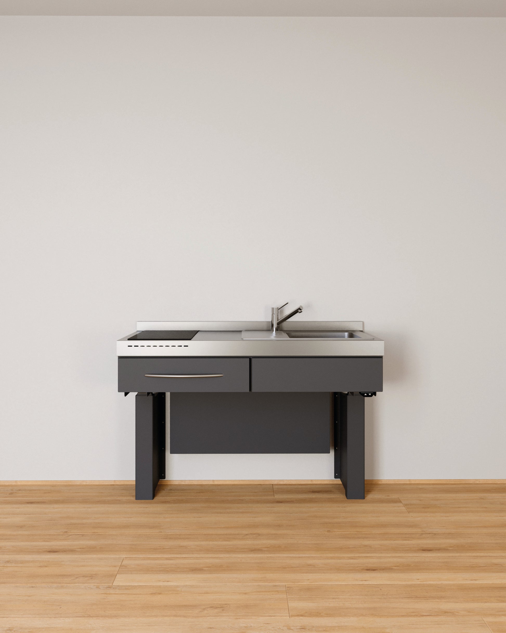 - Piano di lavoro in acciaio inox spazzolato e lucidato di alta qualità