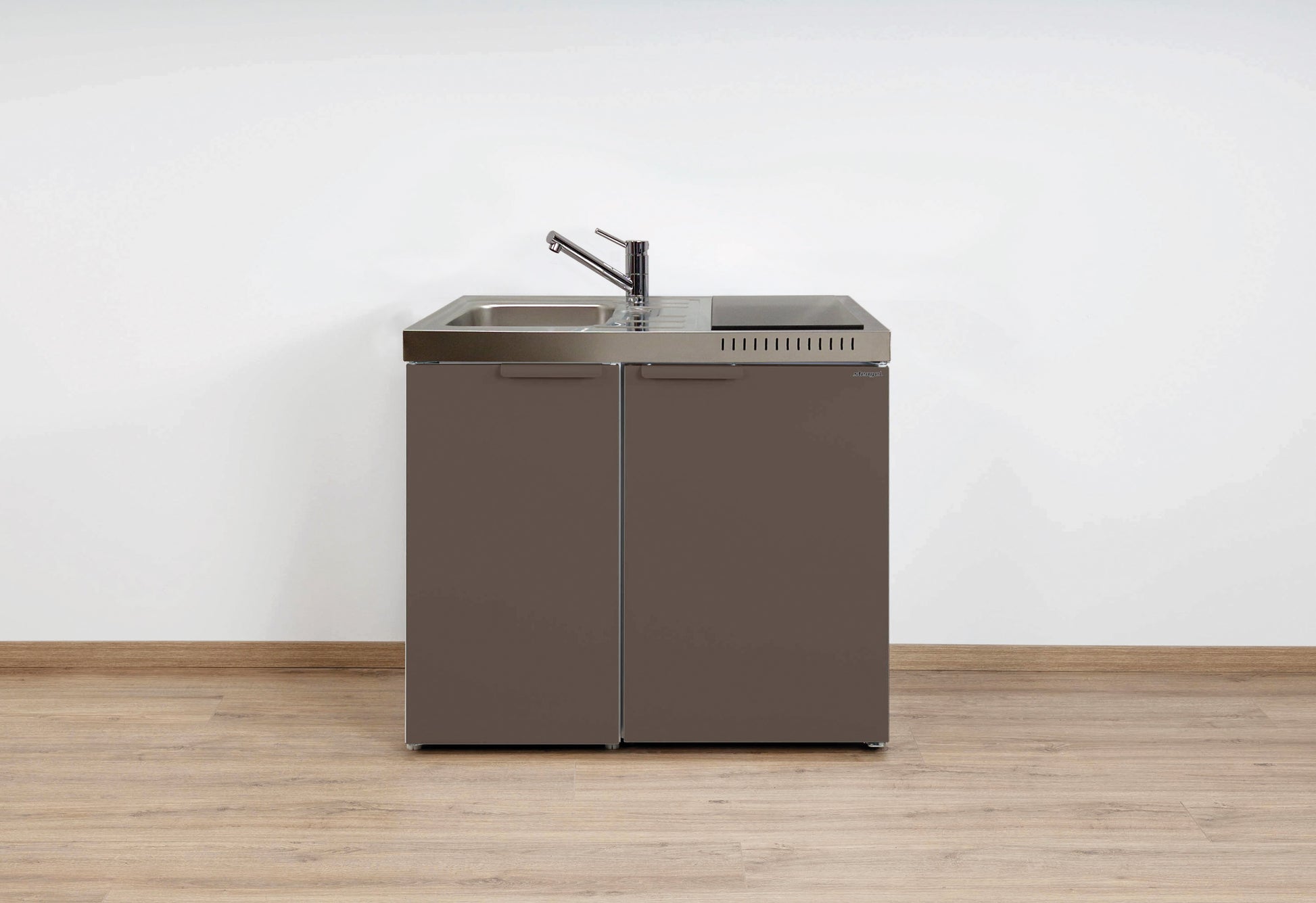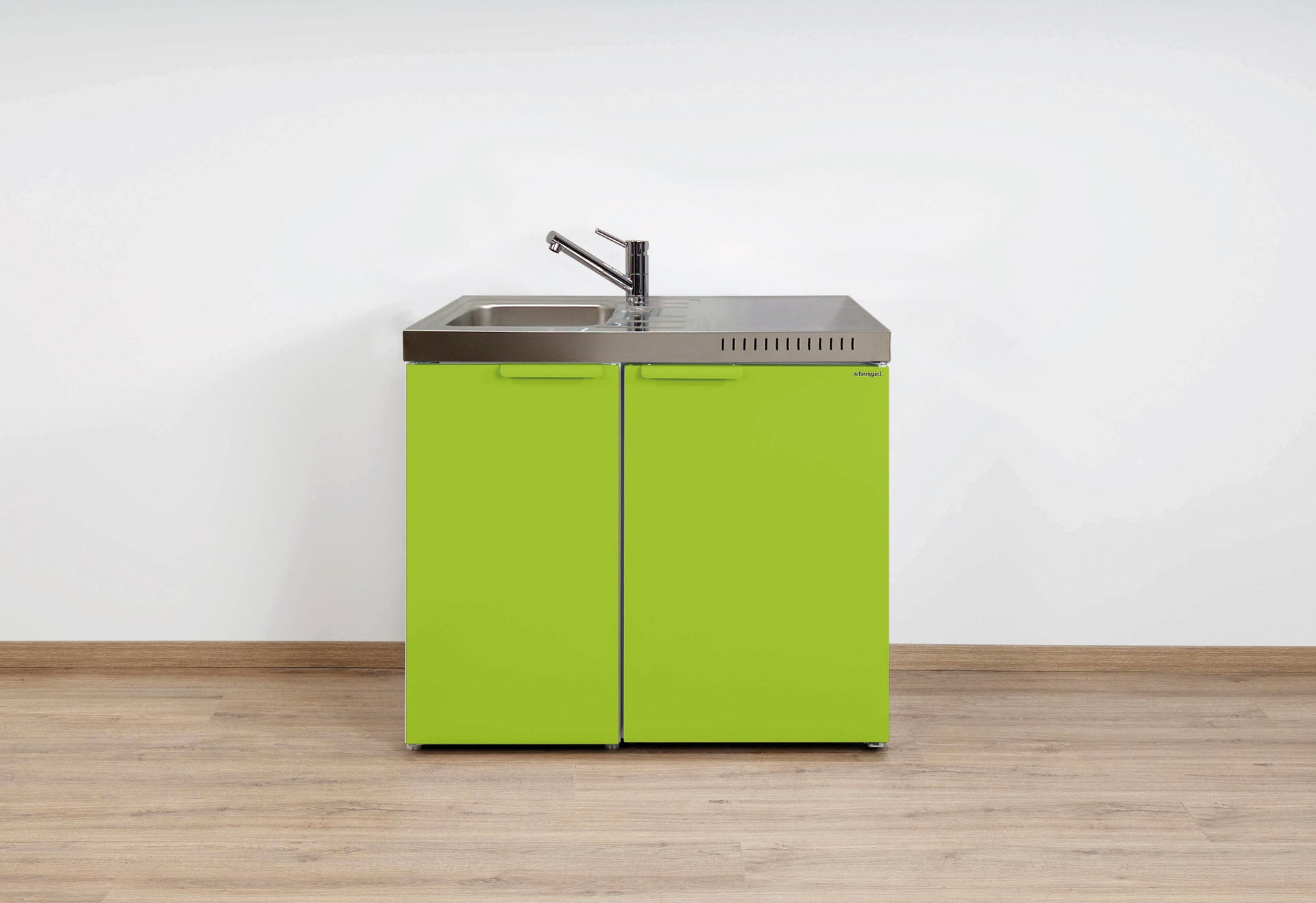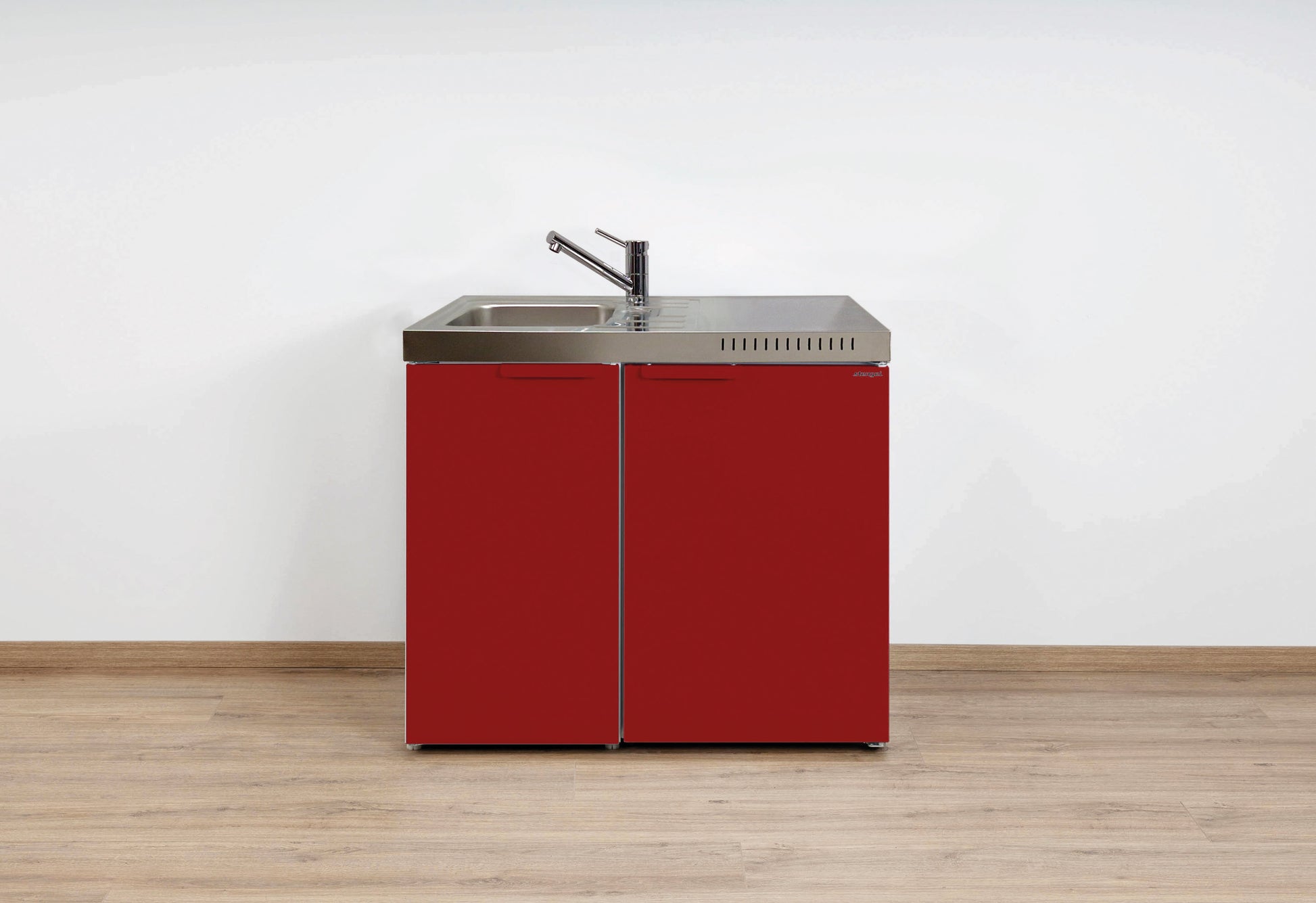 Piano di lavoro in acciaio inox con lavello completo di piletta, sifone e foro rubinetto. Su richiesta la cucina può essere fornita anche senza lavello.