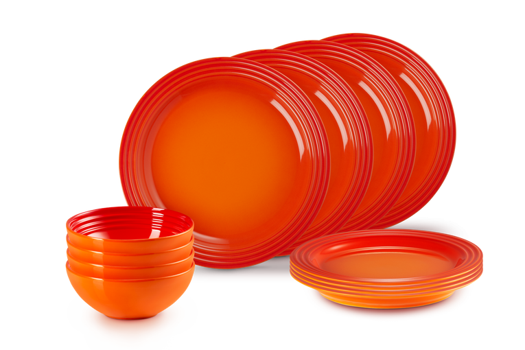 Regalo perfetto per ogni occasione, questo set 12 pezzi è ideale per servire deliziose ricette, dalla colazione alla cena. Il set include 4 piatti piani da 27 cm, 4 piatti frutta da 22 cm e 4 ciotole cereali da 16 cm, ognuna con il nostro iconico logo a tre anelli.